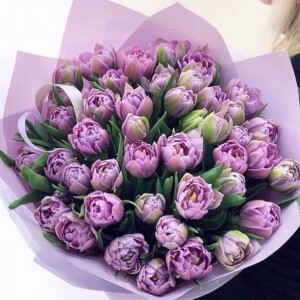 Сиреневые пионовидные тюльпаны в стильной упаковке! Нежные и изысканные.
