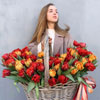 Букет №К47 Корзина с тюльпанами 75 шт.